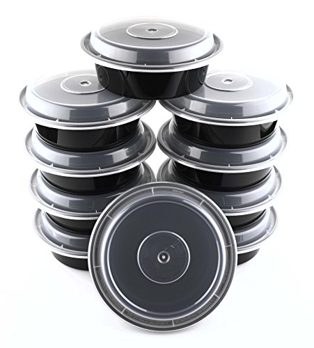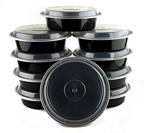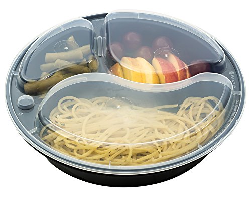 ★★★EXCELLENT Round Black Containers with Clear Lids,★★★ 9"Diameter Capacity Per Compartment 20 ounce 12 ounce and 7 ounce, Height 1 1/2" + 3/4" Dome lid.