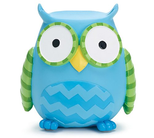 Whooo's Hootie Cutie Owl Shaped Baby Piggy Money Coin Bank (Blue & Green)