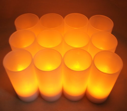 Set of 12 Restaurant Quality Rechargeable Tealights/ Flickering Amber LEDs + 12 Frosted Holders
