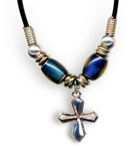 -. Feature : Cross necklace with Mood Beads / 18" black cord / Zinc Alloy beveled Cross Pendant / Silver Finish / Mood beads are very sensitive to heat