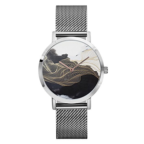 Souarts Black Stainless Steel Mesh Band Color Changing Quartz Analog Wrist Watch 24cm