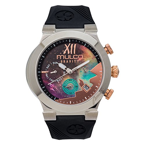 - PUNCTUALITY IS PRICELESS - Mulco has gone tick for tock with other competitive Swiss watches since 1958. Continuing the legacy is the Gravity Galaxi Watch featuring reliable chronograph to synchronize the distinguished Galaxy special multicolor paint design mixture texture sundial with the sands of time. Stainless steel case and bezel. Be fashionably punctual with Mulco, not just in time...