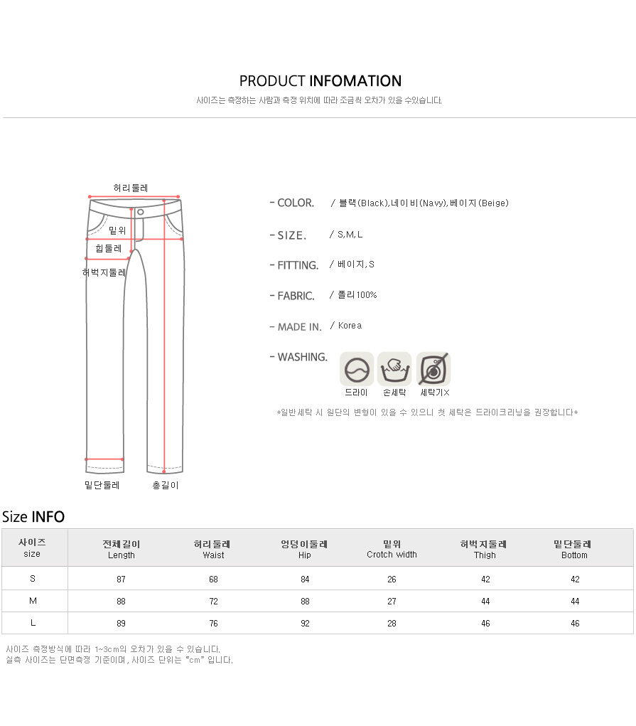 베이지,블랙,네이비 3컬러와 S,M,L 3사이즈 준비!