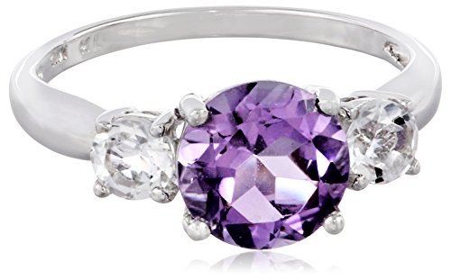- Title : Amethyst and White Topaz Three Stone Ring in Sterling Silver, Size 6