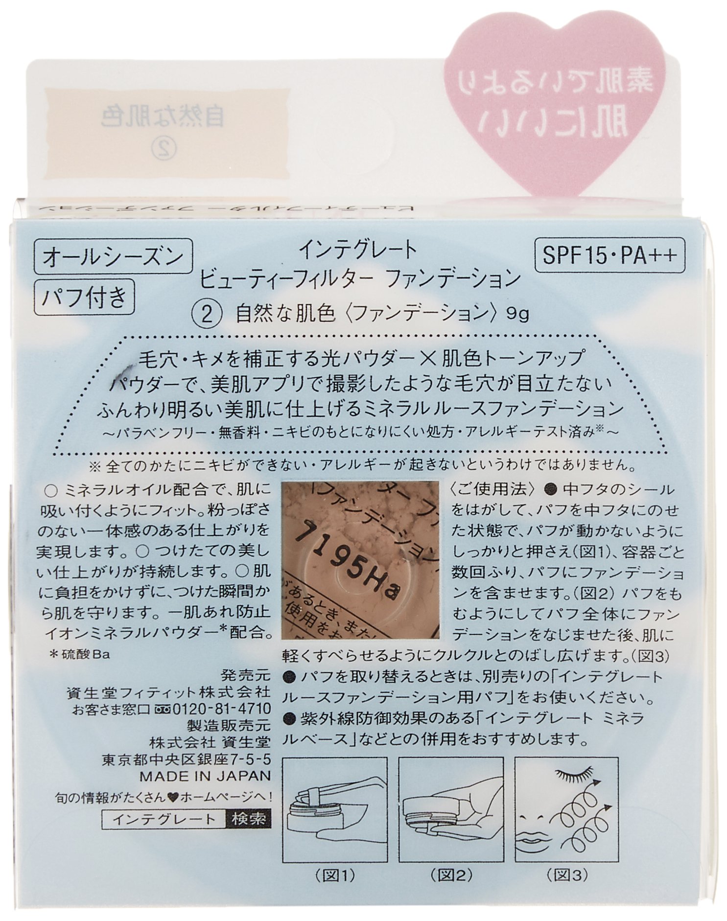※ The SPF display and PA display of the product are the result of measuring 2 mg / cc / m 2 of coated amount as specified in the International SPF Test Method.