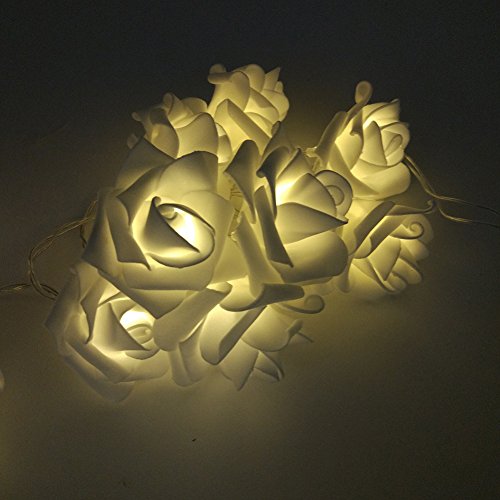 -. Feature : SPECIAL DESIGN: These special Rose string lights illuminate during night, add warm and charming atmosphere to your gardens, patio, lawn, porch, gate, yard, etc., It is super ideal decoration lights for the wedding. / AA BATTERY POWERED: 3 x AA (batteries are not included in the shipment) / ENERGY-SAVING: Safe, energy-saving, no radiation and no pollution / 9 EMITTING COLORS FOR OPTION: white, warm white, red , green, blue , yellow , pink , purple, RGB(multi-color) / WIDE APPLICATION: Perfect for your Decoration for all your holidays such as New Year, Christmas, Valentine's Day, Easter Day, Halloween and etc. And you can use it at all decoration situations such as Xmas trees, wardrobes, tables, nursery rooms, garden parties, fences, patios, etc.