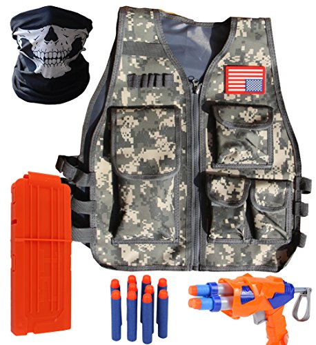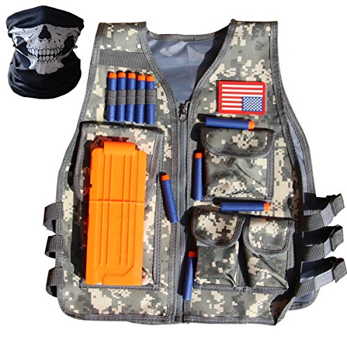 Elite Tactical Vest Kit for Nerf N-strike Elite Series,40-Dart Refill Pack,seamless skull face mask