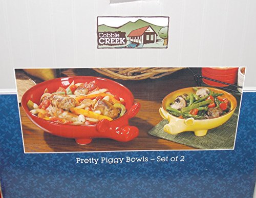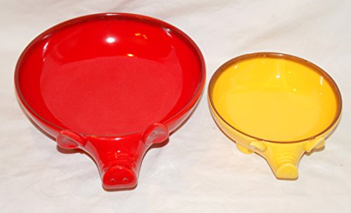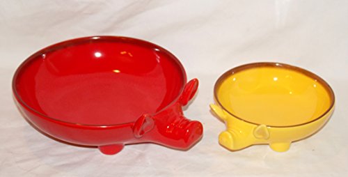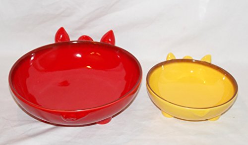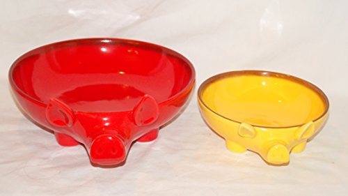New 2pc Staggered Pretty Piggy Pig Ceramic Red & Yellow Serving Bowls Bowl Set