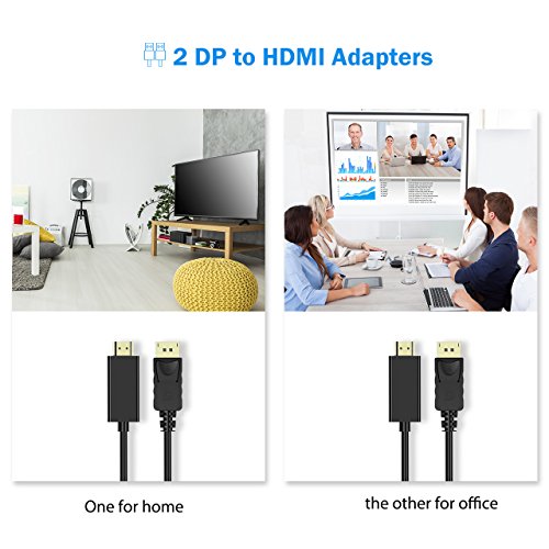 Cablor 2Pcs DP DisplayPort to HDMI Cable,1080P Full HD Video,Black Color 6ft