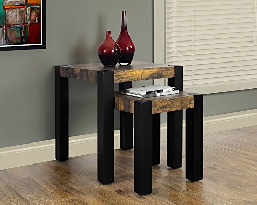 -. Feature : 2 piece nesting table set / Rustic distressed look tops adds warmth and style / Square post legs finished in contrasting black / Versatile as end or accent tables for any room / Small table: 15"lx15"dx17"h/large table: 20"lx20"dx22"h
