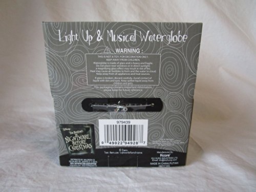 Product Description THE NIGHTMARE BEFORE CHRISTMAS " SALLY " LIGHT UP / MUSICAL WATER-GLOBE SNOW GLOBE FIGURE 8" X 5" WIND KEY AT BOTTOM OF BASE PLAYS THEME SONG " THIS IS HALLOWEEN " 0