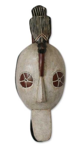 NOVICA Decorative Malian Large Sese Wood Mask, White 'Lucky Senufo Hunter'