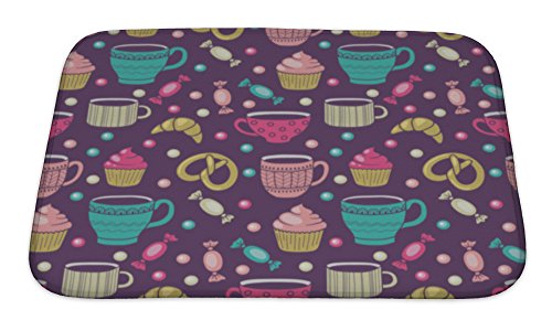 Gear New No Slip Microfiber Memory Foam Coffee Pattern Bath Rug Mat, 24" X 17"