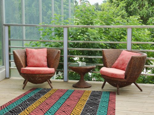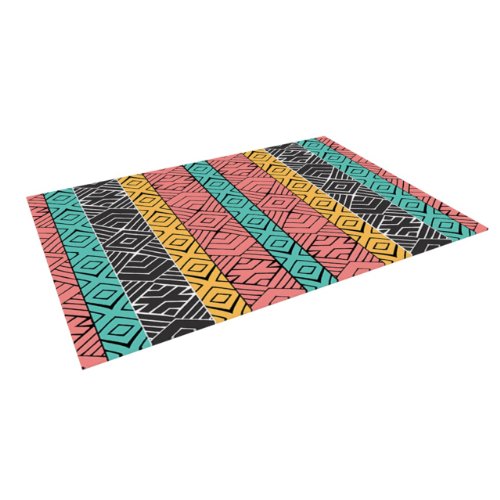 Kess InHouse Pom Graphic Design "Artisian" Pink Teal Indoor/Outdoor Floor Mat, 4-Feet by 5-Feet