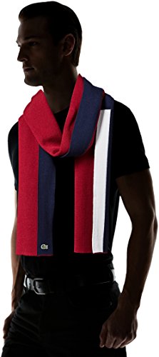 Lacoste Men's Mif Double Face Wool Scarf, Red Basque Chine/Navy Blue-Flour, One Size