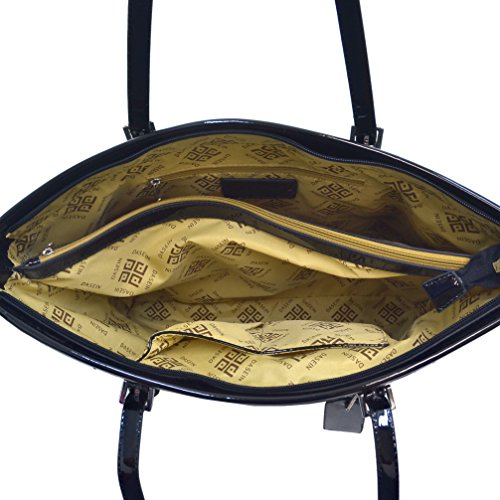 [Pockets]: This Dasein Signature tote work or shopping bag with one outside zipper pocket on back; one zipper and two open top item pockets inside, great for your cell phone, sunglasses, business cards etc; center zip divider to keep everything well organized