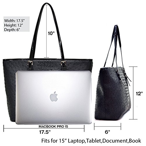 [Dimensions]: Approx. 17"W x 12"H x 6"D. Double handles with 10"drop. Fit Macbook Pro 15. This is a carry all tote without additional long shoulder strap