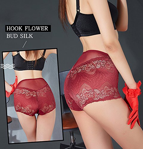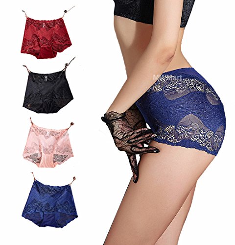 -. Feature : Superior Soft & Breathable lace panties for women, cotton crotch to make the panties healthier, softer and more breathable.Perfect women's lingerie boy shorts panties to show your sexy,charming.Comfort from day to night.No irritation / Sexy Lace Panties: Lace trim, seamless appearance for a smooth look under clothes,stretch fairly well, multicolored mid waist underwear briefs for women 4 pack(black,dark blue,rose red, dark red),you'll want to wear them everyday / Tummy Control Panties: Additional front and full back coverage with stretch lace design that lifting your hips curves well-shaped and totally sexy. Perfect sexy lingerie for women. / Well-Fitting: Item runs small,order one size larger than your normal size for optimal fit. Soft lace underwear panties brief boy shorts for women. Fit for all body figure from petite to plus size ladies. / Washing Tips: For these sexy lace brief,hand wash is recommended,wash separately from other clothes, machine washable using laundry bag.