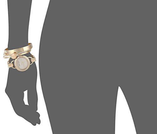 Mother of pearl dial features gold-tone hands, gold-tone hour markers, and Anne Klein detailing.