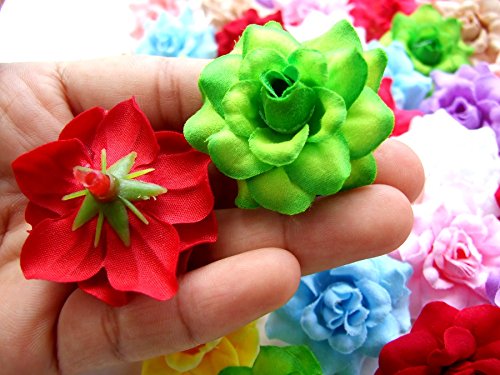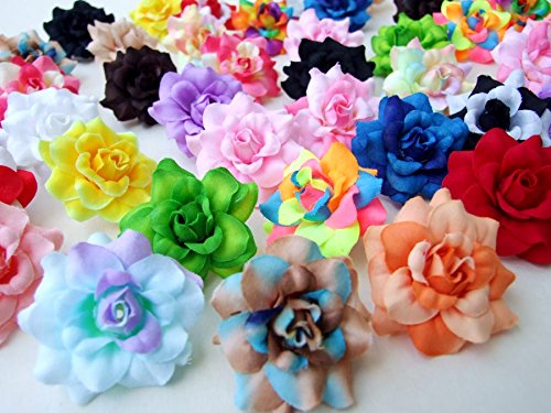 (50 pcs.) Assorted Roses Silk Flower Head 10 Colors Size 1.75" - Artificial Flowers Heads Fabric Floral Supplies Wholesale Lot for Wedding Flowers Accessories Make Bridal Hair Clips Headbands Dress