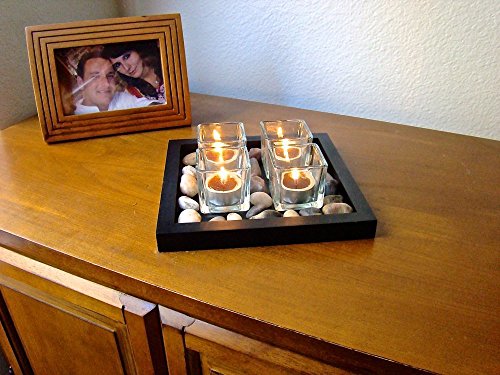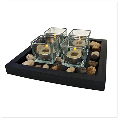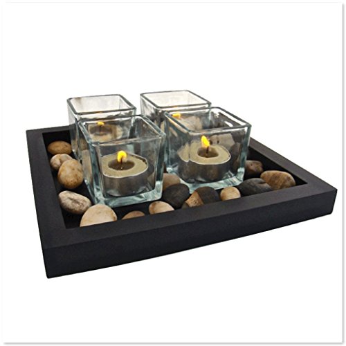 Candle Holder Set with Stones & 8 Pack Scented Tea Lights