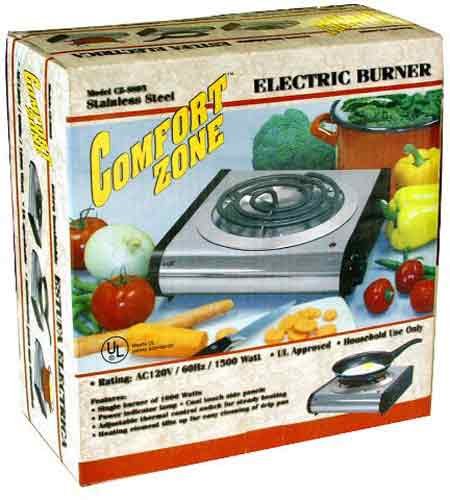 Single burner electric hot plate. 120v, 60HZ, 100wt with thermostat, power light and variable temperature control. HBC - driven to perfection producing quality products for everyday living.
