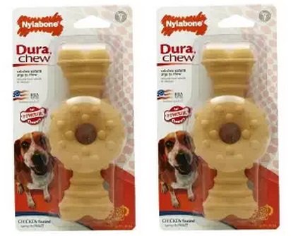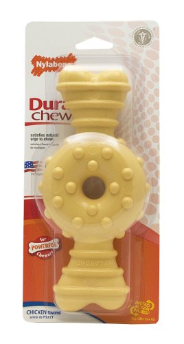 Give your dog something good to chew on. Made with tough, durable nylon, the Nylabone DuraChew Textured Ring Bone was designed for powerful chewers and features various shapes and textures for your dog to explore. Plus, the bristles raised during chewing promote clean teeth and help control plaque and tartar buildup. (Different dogs have different chewing styles and strengths, even within the same breed, so be sure to choose the correct chew size and type for your dog.)Feature