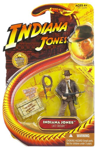 -. Feature : INDIANA JONES w/ Sub-Machine Gun from Indiana Jones and the Last Crusade Action Figure & Accessories (Includes Hidden Relic) / Figure stands approximately 3.75 inches tall. / Includes action figure accessories and Indiana Jones Hidden Relic. / Originally released in 2008 - Retired / Out of production / Ages 4 and up. From Hasbro