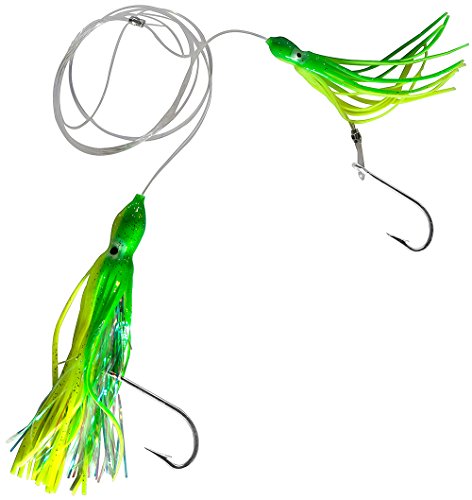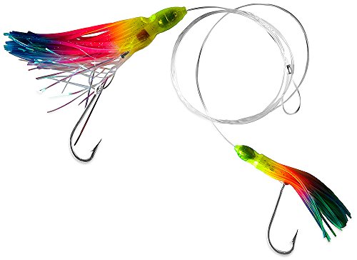-. Feature : Each OFFSHORE FISHING LURE is Rigged with Two Mustad 3407 SS-DT Stainless Steel 4 inch and 6 inch Hooks / 6 MAHI MAHI LURES in Package Made of Clear Leader Material and Stainless Steel Crimps / DEEP SEA FISHING LURES with Premium UV Sparkling Duster / OCEAN FISHING LURES for Mahi-Mahi, Black Fin Tuna, Yellow Fin Tuna, and Sail Fin / No Rigging Needed - Made in the USA