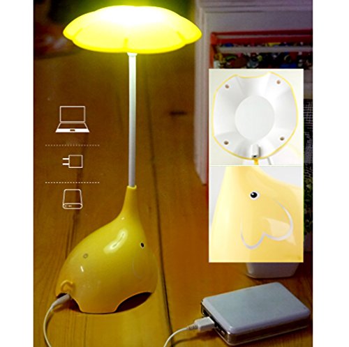 WOMHOPE Cute Elephant Children's Night Lights Flexible Angles Desk Lamp - Design Button Touch Sensor Control 3-Level - Rechargeable - for...