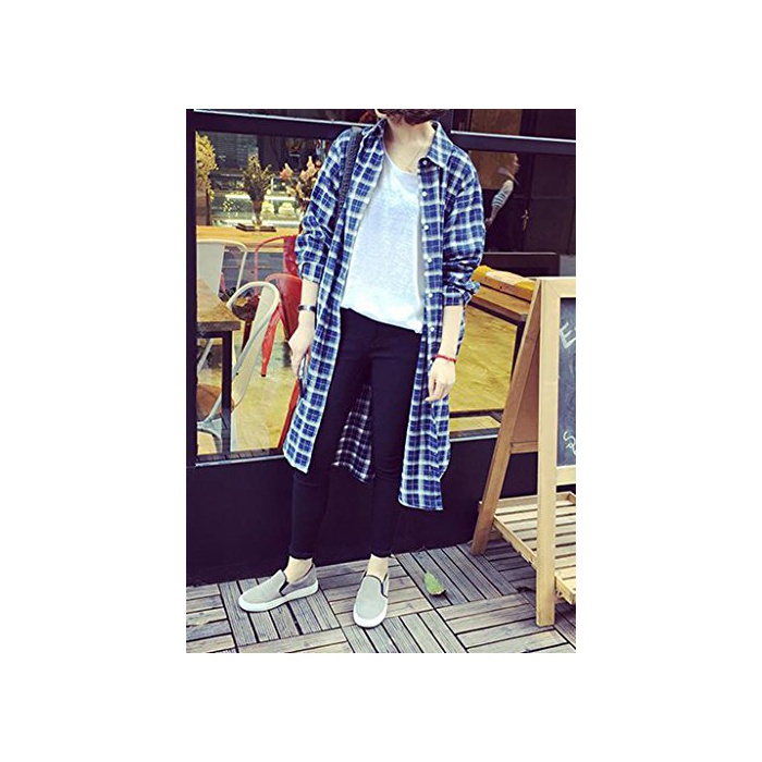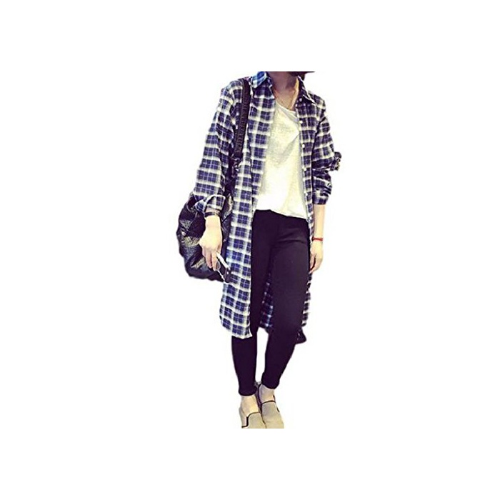 원본상품명: (ドチィン)DaoCheng レディス 長袖 韓風 森ガル シャツ ロング 丈 チェック 柄 カディガン 長袖 ゆったり カジュアル チェック 柄 シャツ ボタン付き POLOネック 膝丈 カ