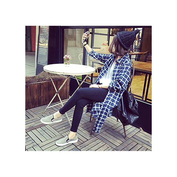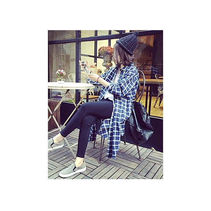 (드《진》)DaoCheng 레이디스 긴 소매 한국풍 삼걸 셔츠 롱 키 체크 무늬 가디건 긴 소매 넉넉하게 캐주얼 체크 무늬 셔츠 버튼 부착 POLO넥 슬키 가디건(6블랙)