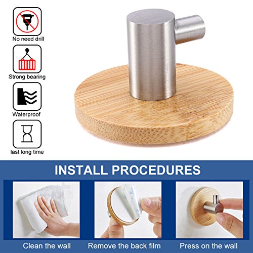 - MATERIAL: The base of the hook is environmental bamboo, well-constructed with 304 stainless steel hanger. The base circle diameter is 1.97".