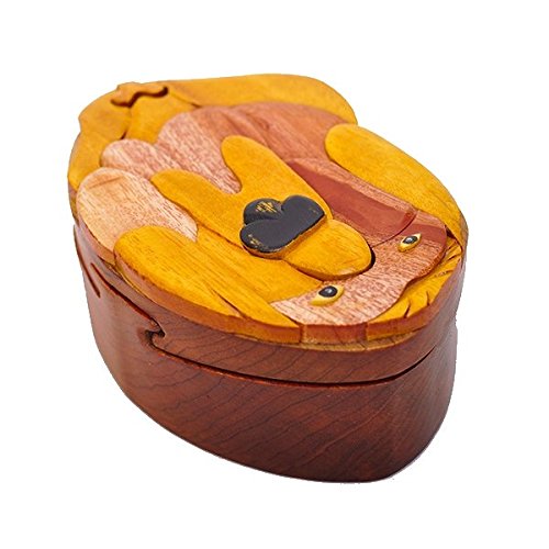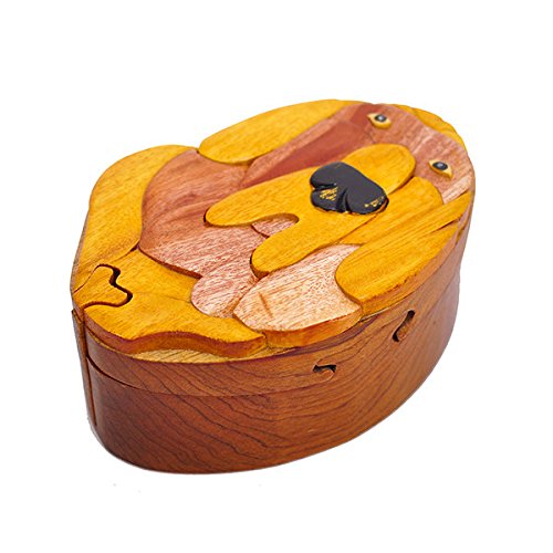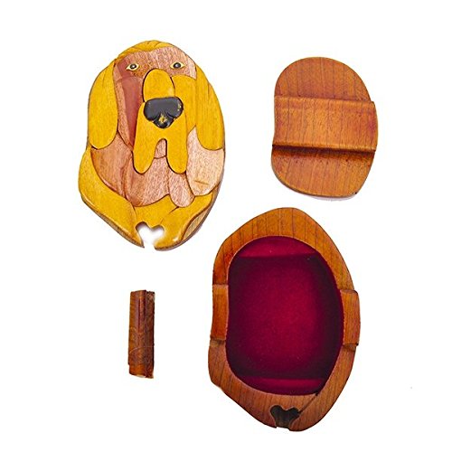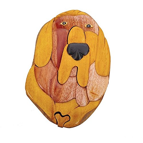 Handmade Wooden Art Intarsia TRICK SECRET Bloodhound Dog Puppy Puzzle Trinket Box (3303) (g2)