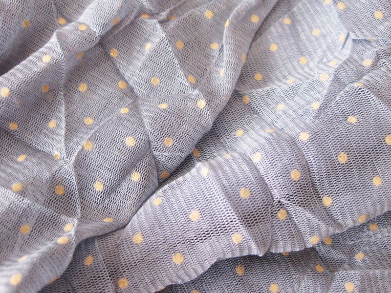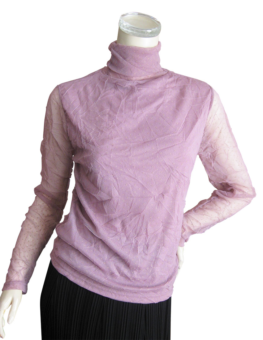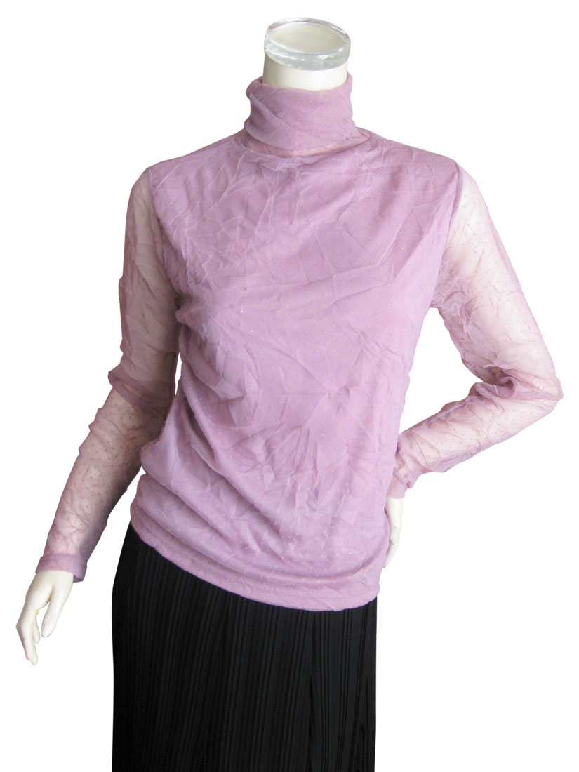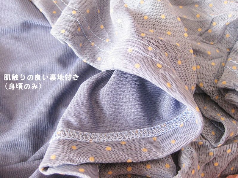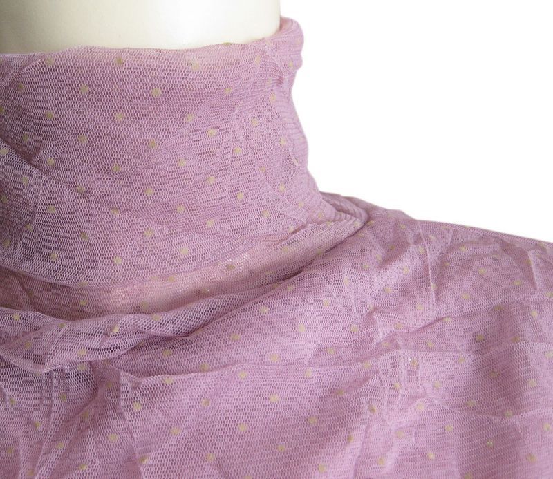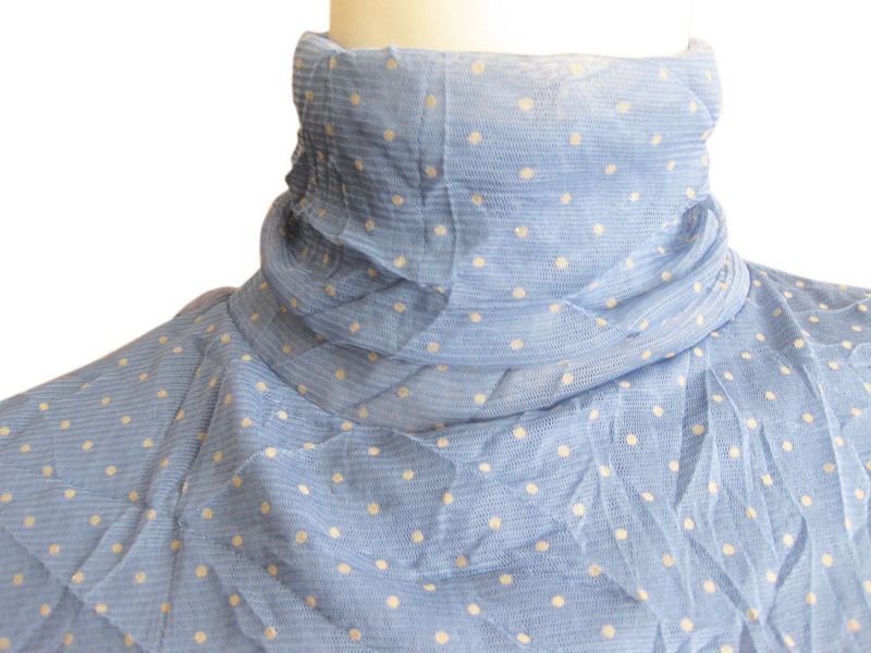 袖シースルー水玉柄ハイネックプルオーバ- M~Lフリー 2色展開