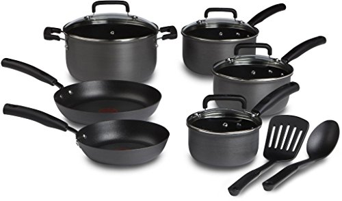 T-fal D913SC Signature Hard Anodized Scratch Resistant PFOA Free Nonstick Thermo-Spot Heat Indicator Cookware Set, 12-Piece, Gray