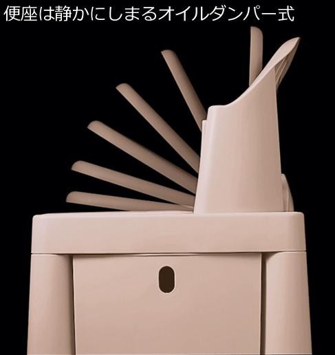 | 付属品 | 専用バケツ(本体装着済)、専用消臭液、便座カバー(ピンク)、取扱説明書 |