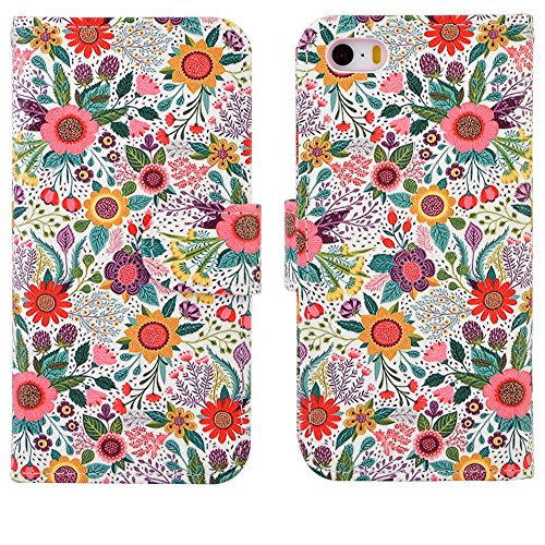 iPhone SE Wallet Case, Dimaka Floral Pattern Flower Case with Flip Stand Card Slots Cash Compartment, Premium PU Leather with Strap Hole for iPhone SE / 5 / 5S (Bush Flower)