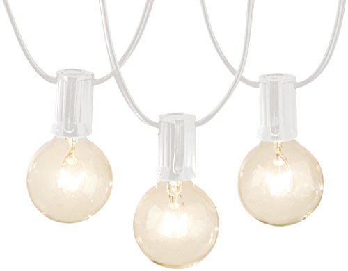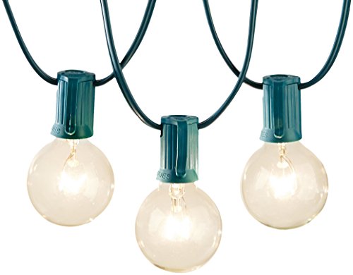 25-foot patio string of lights with 25 clear incandescent G40 globe bulbs; ideal for decks, yards, outdoor venues, and indoor decor