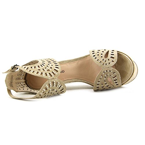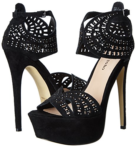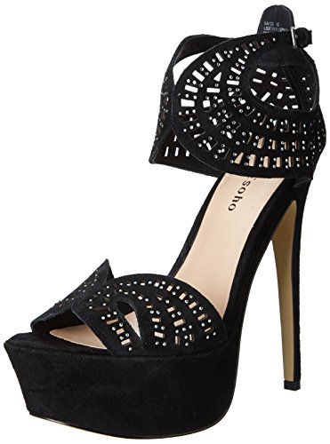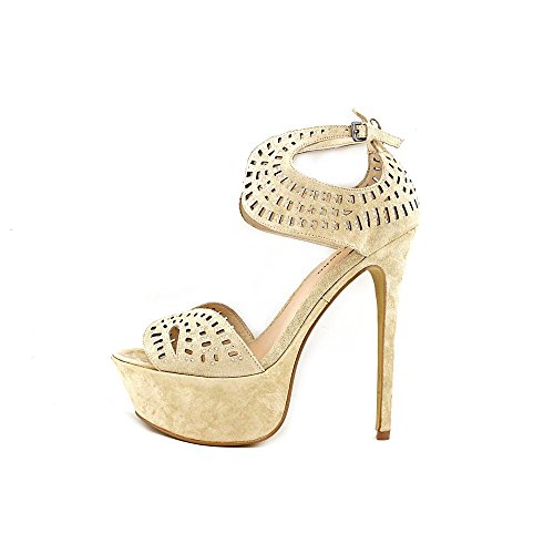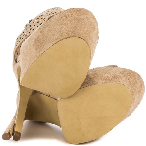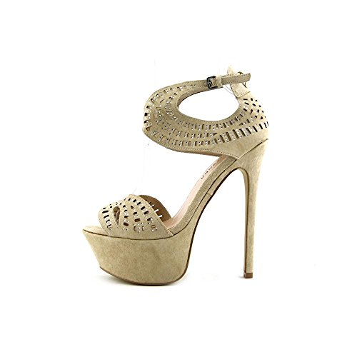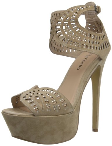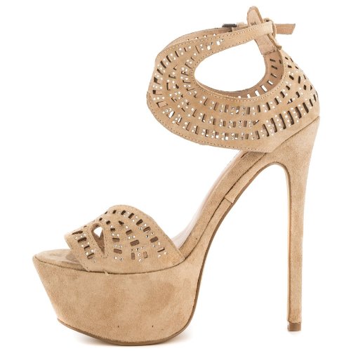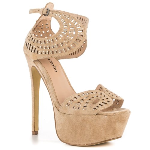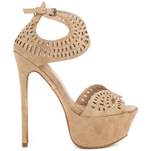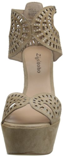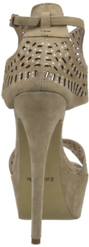 Product Description Get a desirable look in the stunning Saige. This ZiGi Soho sandal is enveloped in a soft nude suede with accenting stones. Playful cut outs grace the upper while a 6 1/2 inch heel and 2 inch platform create the perfect lift. 0