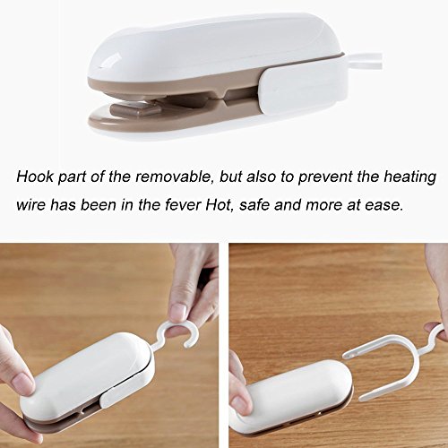 Design: Unique slot and hook can shut off power when not in use and hang over any corner of kitchen. Very safe and convenient mini bag sealing machine