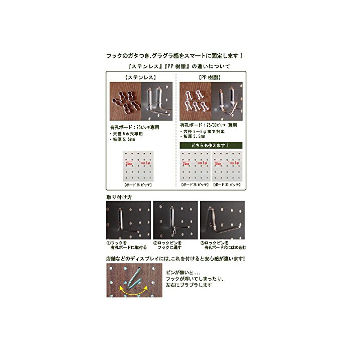 원본상품명: ★有孔ボ?ド用 J型フック、樹脂ロックピン付セット P2530【5個入】