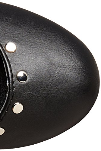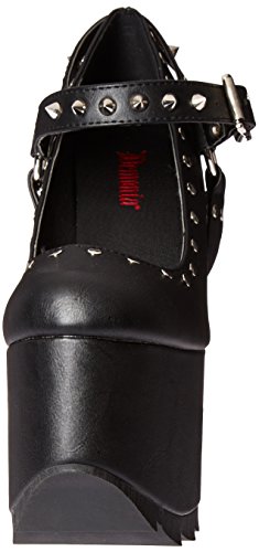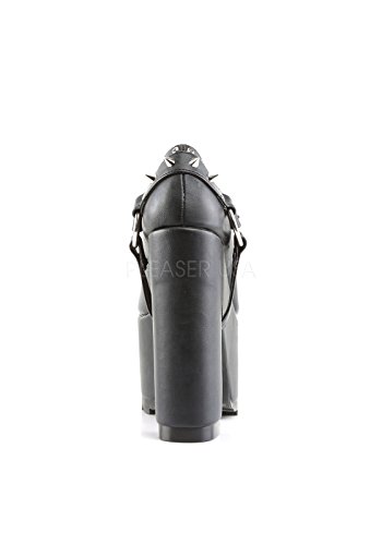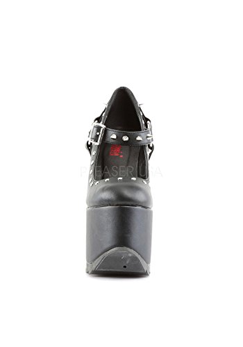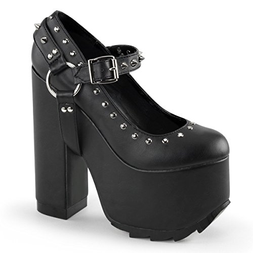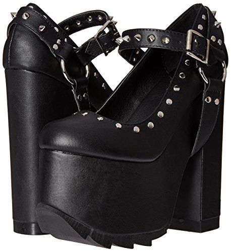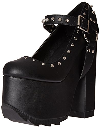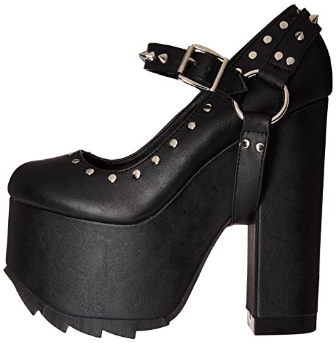 Product Description6 1/4 (16.25cm) block heel, 3 (7.5cm) ridged platform mary jane w/studs, o-ring and buckle detail0