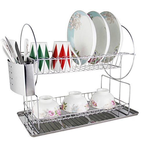 -. Feature : Easy to assemble Room for glassware & tableware like saucers, cups, bowls & much more ;Set measures 16.7"(L) x 9.25"(W) x 14.1"(H) approximately / Good durability for sustaining bowls, spoons, chopsticks and dishes well,Save room / Constructed with heavy duty and rust-resistant chromed wire for stability and durability. / This design provides more space without costing more counter top space,making it very convenient,easily fit with any kitchen surrounding