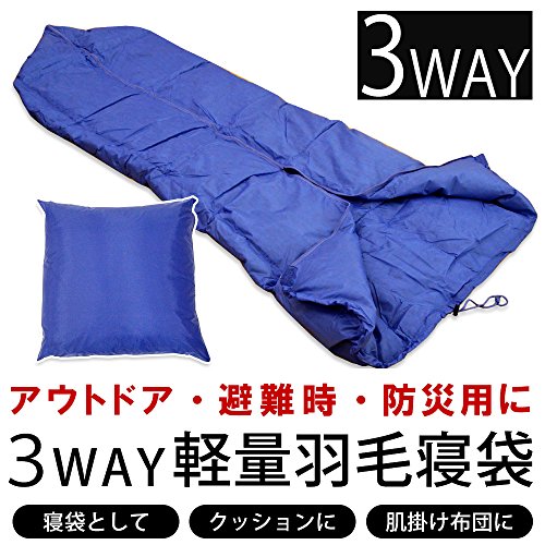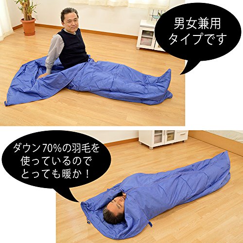 상품명: 3WAY 경량 깃털 침낭 일인용 블루 봉투형 다운 남녀 겸용 방수 《슈라후》 통째로 세탁