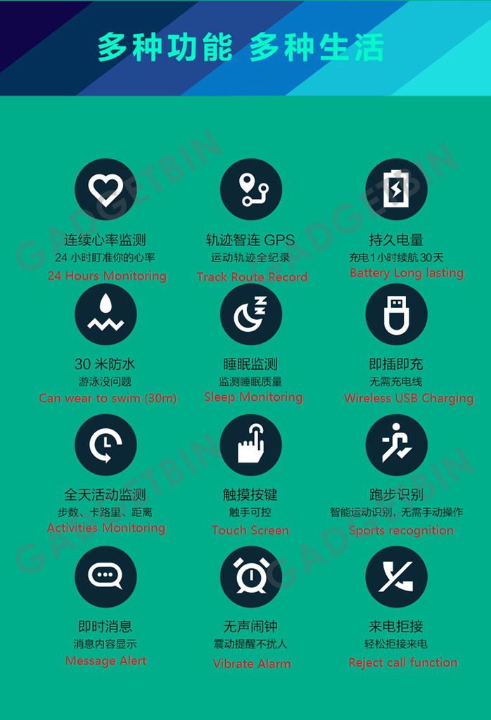 Features : Pedometers, Calories Burned, Touch Key, Community Share, Wearable, Sports, Alarm Clock, Health Care, Heart Rate Monitor, Multifunction, Sleep Tracker, Exercise Record, Water Resistant / Water Proof, Long Standby, Message Control