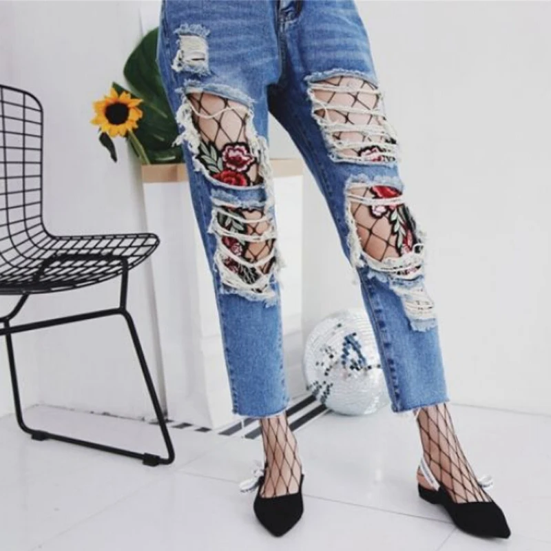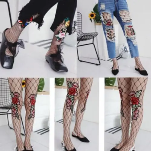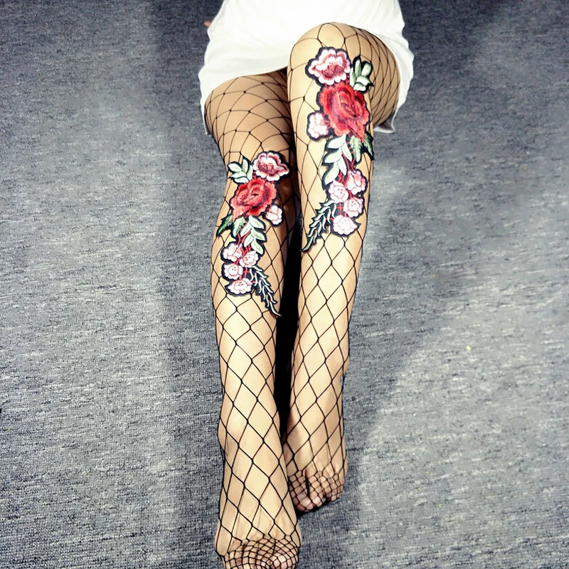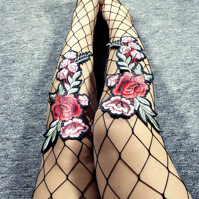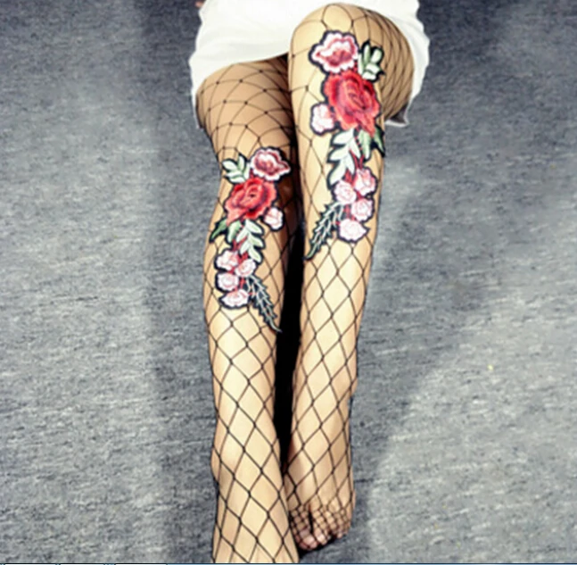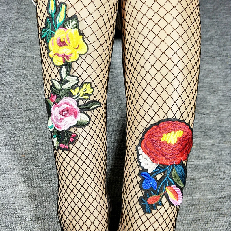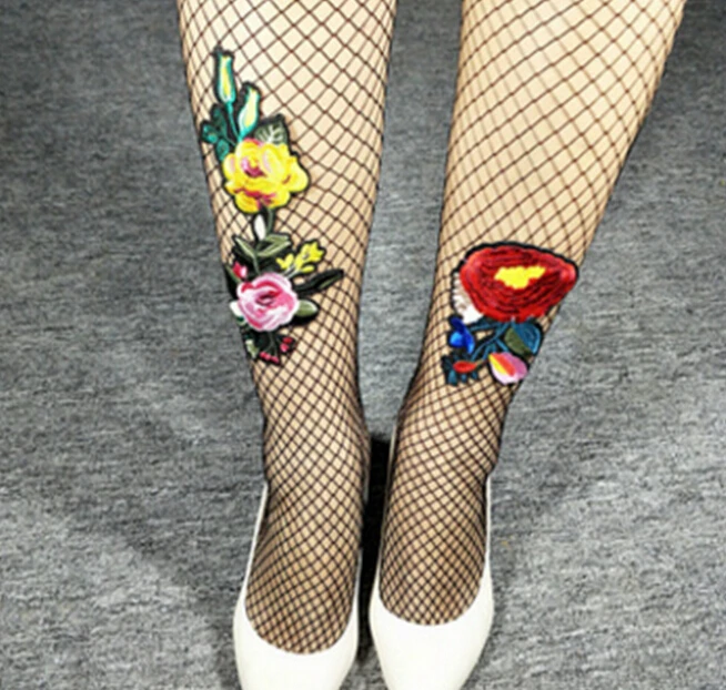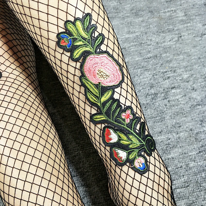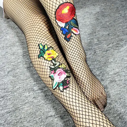 Model Number:Flower Embroidery Patch Hollow Out Fishnet Pantyhose