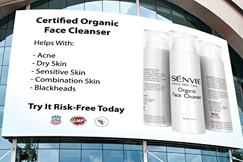 -. Feature : CERTIFIED ORGANIC INGREDIENTS MAKE SKIN SMOOTH & HEALTHY - Senvie organic facial cleanser includes rich oils and certified organic ingredients that are clinically proven to gently exfoliate and cleanse pores so your skin is left smooth, soft and vibrant from the first application. / NOURISHES DRY, SENSITIVE OR ACNE-PRONE SKIN - This natural face cleanser and face wash works to remove dirt, impurities and dead skin cells, enriching skin to give you a fresh, flawless complexion. Senvie organic face cleanser works day or night with all skin types and is an effective face wash for oily and dry skin. / UNCLOGS PORES & PURIFIES SKIN - This is the best face cleanser to unclog pores and make them appear cleaner and smaller for healthier looking skin. You won't need to hide under layers of makeup or be embarrassed about your acne. This powerful facial wash will give you a complexion you can be proud to show off! / EFFECTIVE MAKEUP REMOVER - Forget using facial wipes to clean off heavy or hard to remove makeup. Senvie contains powerful organic ingredients like Sunflower Oil, Beeswax, Olive Oil, Shea Butter, Coconut Oil and Aloe Barbadensis Leaf Juice that work together to remove makeup or grime. / 90-DAY MONEY BACK GUARANTEE - We are so confident that you'll love Senvie, we are offering you a 90-day money back guarantee. No questions asked. That's how confident we are in this highly effective, USA-made organically infused face cleanser. This face wash works great for men and women, day or night!