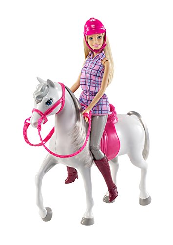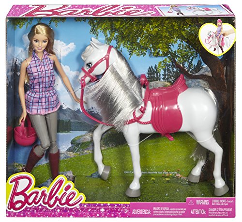 -. Binding : Toy -. Brand : Mattel -. EAN : 0887961206784 -. Feature : Girls can ride into adventure with barbie and her beautiful white horse! Style its beautiful gray mane and tail and put on her bright pink reins and saddle to get her ready for imaginative horseplay. / Looking ever so cute, barbie doll fits on the saddle for a day of riding! She is positively pretty in plaid tunic, tall riding boots and pink helmet. / Girls will love playing horseback-riding adventures with this barbie horse doll set. Includes articulated barbie doll wearing fashion and accessories and horse with saddle and reins. / Doll measures about 11 1/2-inches tall and cannot stand alone. / Ages 3 and up. -. IsAdultProduct : 0 -. Label : Mattel -. Manufacturer : Mattel -. Model : DHB68 -. MPN : DHB68 -. PackageQuantity : 1 -. PartNumber : DHB68 -. ProductGroup : Toy -. ProductTypeName : TOYS_AND_GAMES -. Publisher : Mattel -. Studio : Mattel -. Title : Mattel Barbie Doll Saddle and Ride Gray Toy Pony Horse Kid Child Play Set, Pink -. UPC : 887961206784