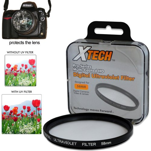 Xtech 58mm UV (Ultraviolet) Protection Filter; protects the lens & reduces lens flare and ghosting caused by reflections - Xtech 3-in-1 Collapsible design Soft Rubber Lens Hood; Prevents image-degrading lens flare by blocking stray light